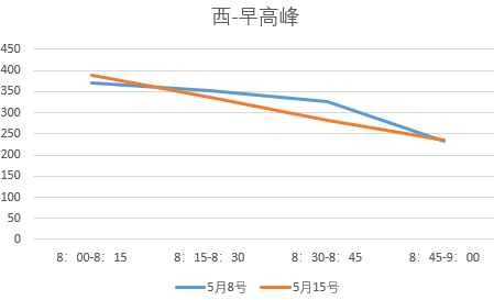 启用溢出控制后,香蜜湖路-侨香路交叉口通行秩序井然,通行能力略微增加,由人工远程控制改为自动溢出控制,在保障交叉口通行秩序的同时,极大的解放了警力资源。下图5月8日为启用溢出控制早晚高峰小时通过量,5月18日为解除溢出控制早晚高峰小时通过量,略微增加5.25%和3.26%。